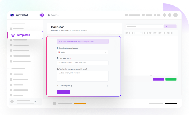 Increase the quality of your output by working with Chat by WriteBot prebuilt prompts. This helps you guide our software to better content and Choose from emails, social posts, long-form blog posts, and more!